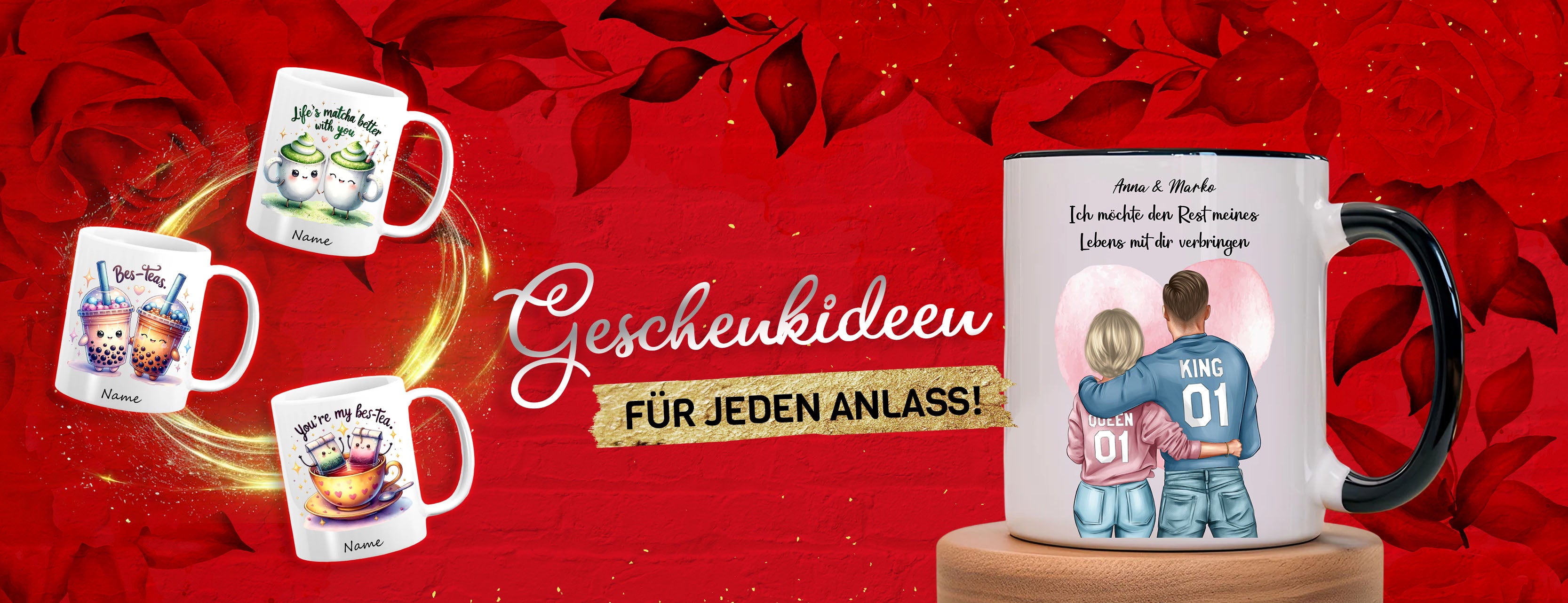 Ihrem Online-Shop für personalisierte Produkte und Geschenke. Unsere Kollektionen sind so vielfältig und einzigartig wie unsere Kunden.Egal ob für Männer, Frauen oder Kinder, bei uns finden Sie garantiert das passende Design! Wir wählen unsere Marken sorgfältig aus und stellen sicher,dass sie unseren hohen Standards entsprechen. Sichern Sie sich jetzt Ihr selbst entworfenes personalisiertes Geschenk.