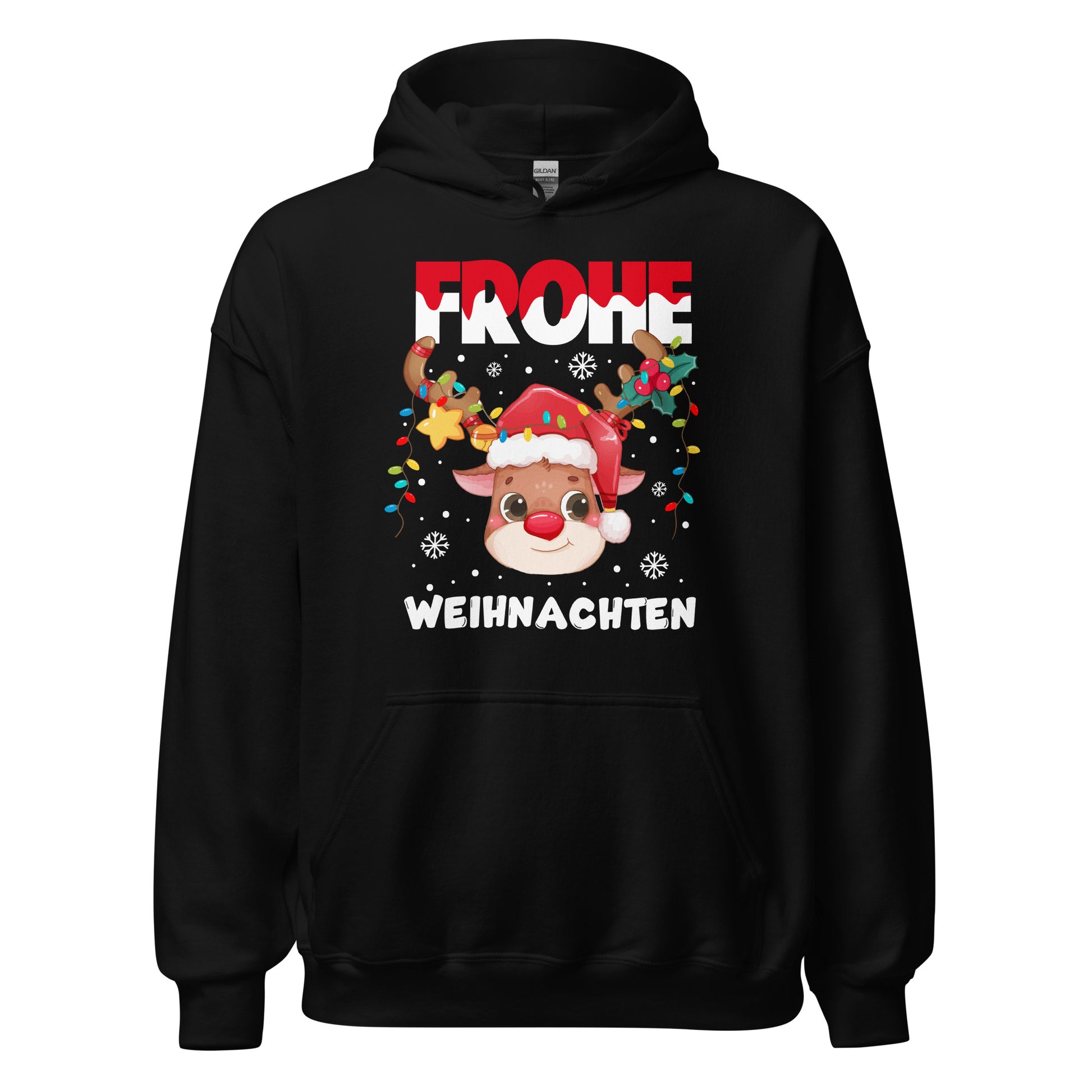 Tauche ein in die zauberhafte Atmosphäre der Weihnachtszeit mit unserem exklusiven "Frohe Weihnachten! Süßes Rentier Hoodie". Dieser Kapuzenpullover verbindet festliche Stimmung mit entzückendem Rentierdesign und bringt so den winterlichen Charme direkt in deinen Kleiderschrank.