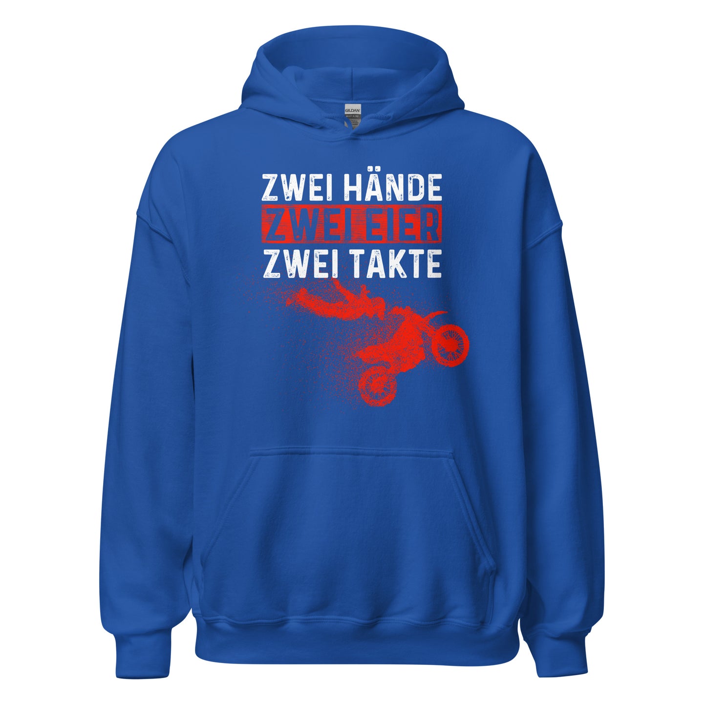 Entdecke unseren einzigartigen Motocross Kapuzenpullover mit dem humorvollen Spruch "Zwei Hände, Zwei Eier, Zwei Takte - Motocross Action!" Ein absolutes Must-Have für alle Motocross-Fans und Actionliebhaber. Dieser Hoodie bietet nicht nur einen coolen Look, sondern auch höchsten Tragekomfort und erstklassige Qualität. Mit seiner Kapuze und der praktischen Kängurutasche ist er perfekt für jede Gelegenheit. Zeige deine Leidenschaft für Motocross und sorge für Aufsehen!